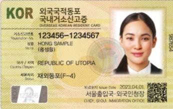 | · | 재외동포 F-4 비자 소지자의 거소증 앞/뒷면 복사본 혹은 비자 복사본 |