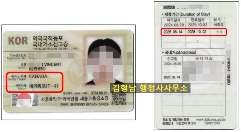 • 재외동포 비자 F-4, 국내거소신고증 체류자격 연장 완료 (3년)