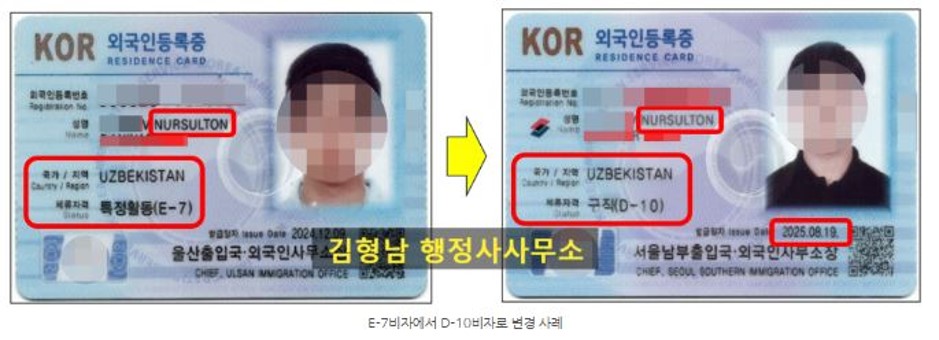취업E-7비자에서 D-10비자로 변경 완료 (우즈베키스탄 우수 인재)